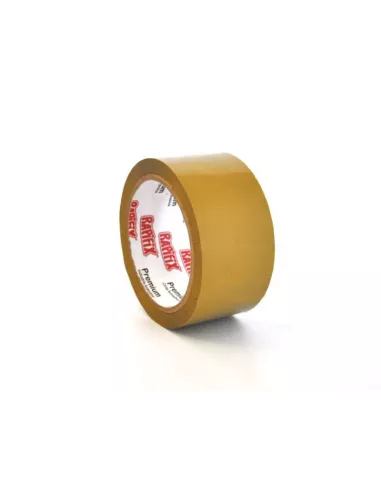 Cinta de polipropileno biorientado para embalaje y sujeción, sensible a la presión, resistente al envejecimiento por ozono y luz solar. Su presentación es en color marrón.