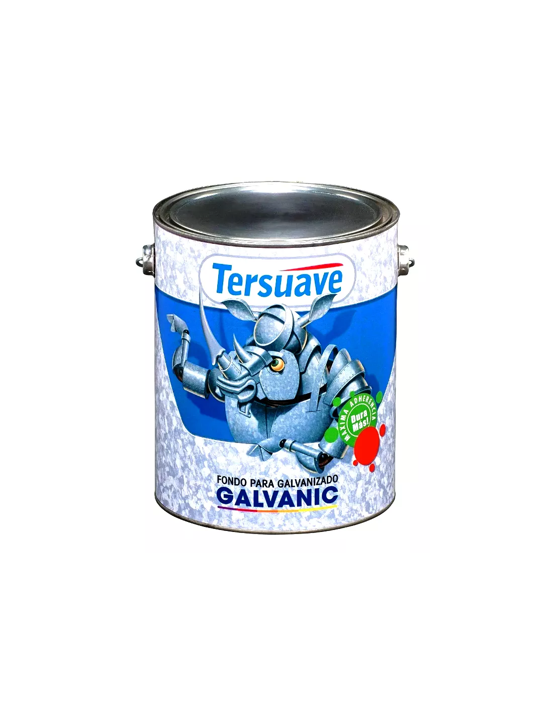 Preparación de la superficie : La superficie debe estar limpia, seca y exenta de polvo, grasas, aceites, jabones, ceras u otros desmoldantes o contaminantes. Si la superficie es nueva es necesario permitir la exposición a intemperie por el término de 6 meses. Si no es posible realizar esta operación, se hará un ensayo aplicando Galvanic sobre un área de 1 m2, dejando secar 1 semana y comprobando la adherencia a través de un test de tracción con cinta adhesiva. En caso de observarse irregularidades, aplicar previamente Desoxidante Fosfatizante Tersuave, lavar con agua y dejar secar. Si la superficie presenta focos de óxido, se deberá eliminar el óxido suelto y aplicar Convertidor de Óxido Tersuave, solamente en esos sectores. Si la superficie se encuentra pintada y descascarada, se eliminarán las partes flojas, se deberá lijar con lija al agua y eliminar el polvillo resultante. Posteriormente, en todos los casos, aplicar 1 mano de Galvanic, esperando 12 horas para realizar la aplicación de la pintura de terminación. No aplicar al rayo del sol o a temperaturas superiores a los 30 grados c.