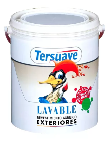 Tersuave lavable acrílico para Exteriores es un producto de alta calidad, con una gran resistencia a la intemperie y los agentes atmosféricos. Su excelente poder cubritivo y gran durabilidad, sumados a la excelente resistencia a la abrasión y al lavado, lo constituyen en un producto ideal para el pintado de superficies de mampostería, ladrillos, revoques, hormigón, material para frentes, sus colores, además, le otorgan un atractivo aspecto decorativo.